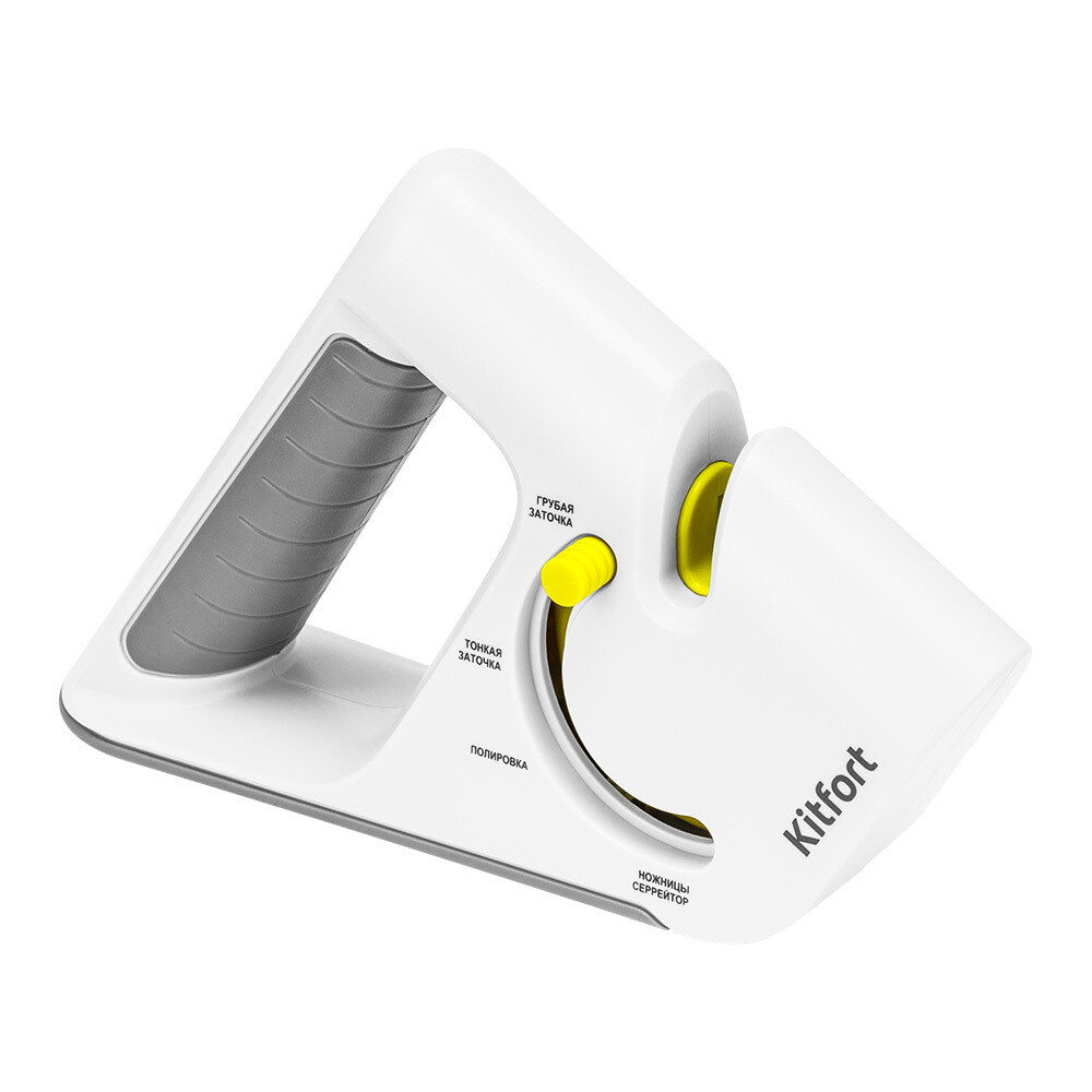 Точилка для ножей поможет быстро и безопасно заточить односторонние ножи, серрейторные ножи и ножницы. Абразив из вольфрамовой стали подходит для грубой заточки, точильные камни с алмазной крошкой – для тонкой заточки, а керамические камни – для полировки. Данная модель точилки предназначена для односторонней и двусторонней заточки, также ей можно заточить ножницы и серрейторные ножи, а после заточки – отполировать. Прорезиненные ножки надежно фиксируют точилку на столе и предотвращают ее скольжение во время работы. Во время работы не давите на лезвие слишком сильно. Количество повторений проведения лезвий при заточке зависит от состояния лезвия. Не используйте устройство для заточки керамических ножей и ножей с поврежденными или абсолютно тупыми лезвиями.