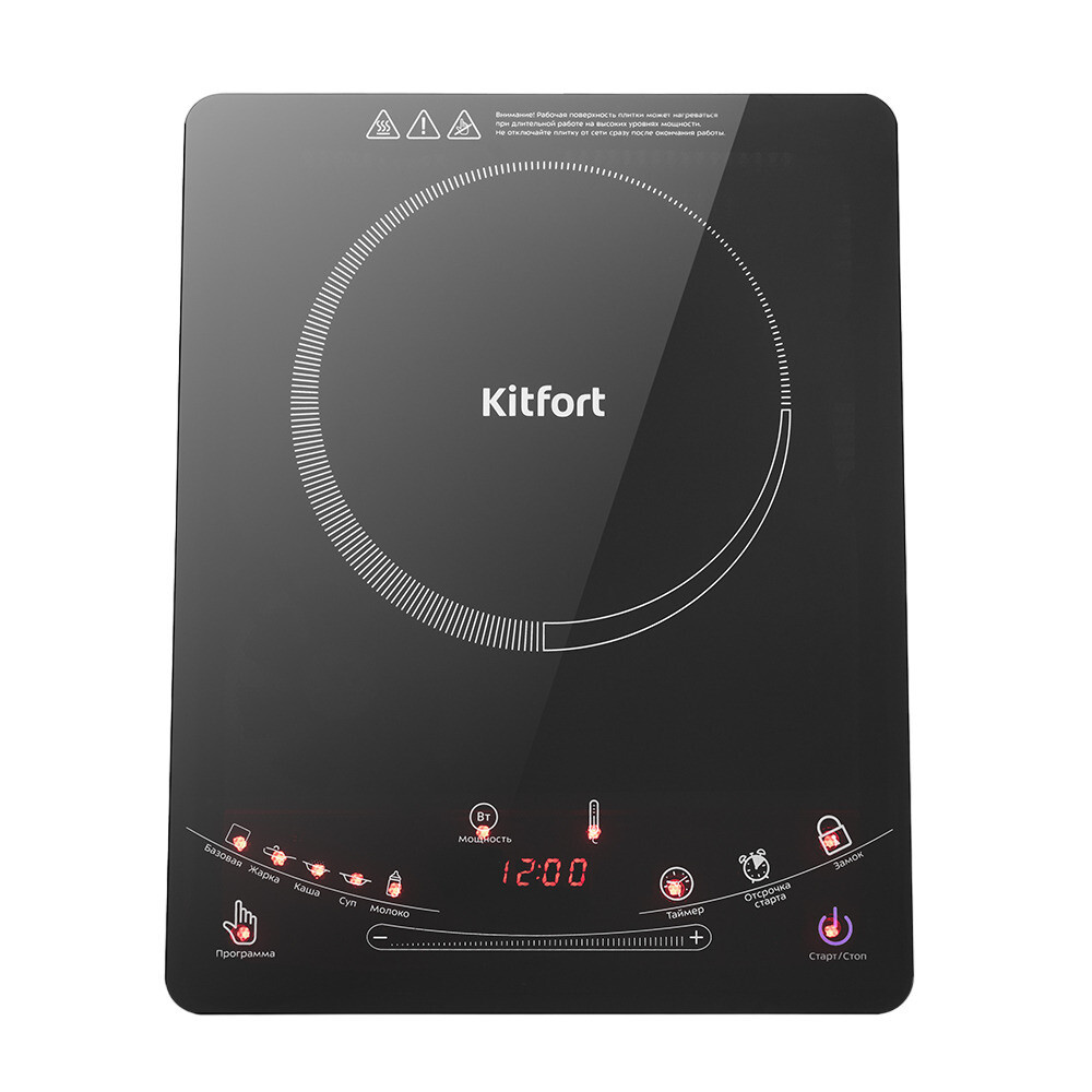 Плита имеет более тонкий корпус, в отличие от своих предшественников – всего 38 мм! Для индукционной плиты подходит посуда с дном из ферромагнитных материалов – стальная, чугунная, эмалированная, посуда из нержавеющей стали, а также любая другая, предназначенная для индукционного нагрева. Плита выдерживает вес не более 7 кг. Индукционная плита Kitfort КТ-106 практична и экономична. Эта плита использует современные технологии, позволяющие готовить ваши любимые блюда вкусно, быстро и абсолютно безопасно. Индукционная плитка практически исключает вероятность получения ожогов, так как рабочая поверхность почти не нагревается во время готовки. Мощностные режимы регулируются от 200 до 2000 Вт. Плита имеет программы приготовления "Базовая", "Суп", "Жарка", "Каша", "Молоко", а также таймер времени приготовления и отложенный старт.