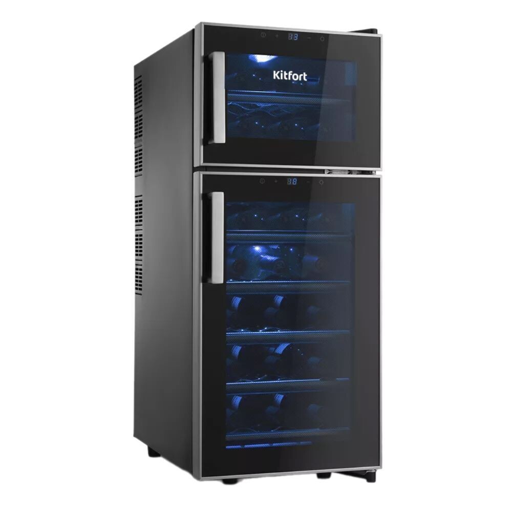 Винный шкаф — это специальная холодильная камера, в которой можно установить подходящую для хранения вина температуру. В винном шкафу семь полок, на каждой полке помещается по три бутылки. Дверцы шкафа прозрачные, в верхней части расположена сенсорная панель управления со светодиодным дисплеем. Охлаждение производится при помощи термоэлементов Пельтье, поэтому в конструкции винного шкафа не используются хладагенты и компрессор, из-за чего уровень шума и вибрации при работе значительно ниже, чем у холодильников. Температура внутри винного шкафа выставляется в пределах от 7 °С до 18 °С для верхней камеры и 10 °С до 18 °С для нижней камеры, с шагом 1 °С.