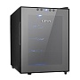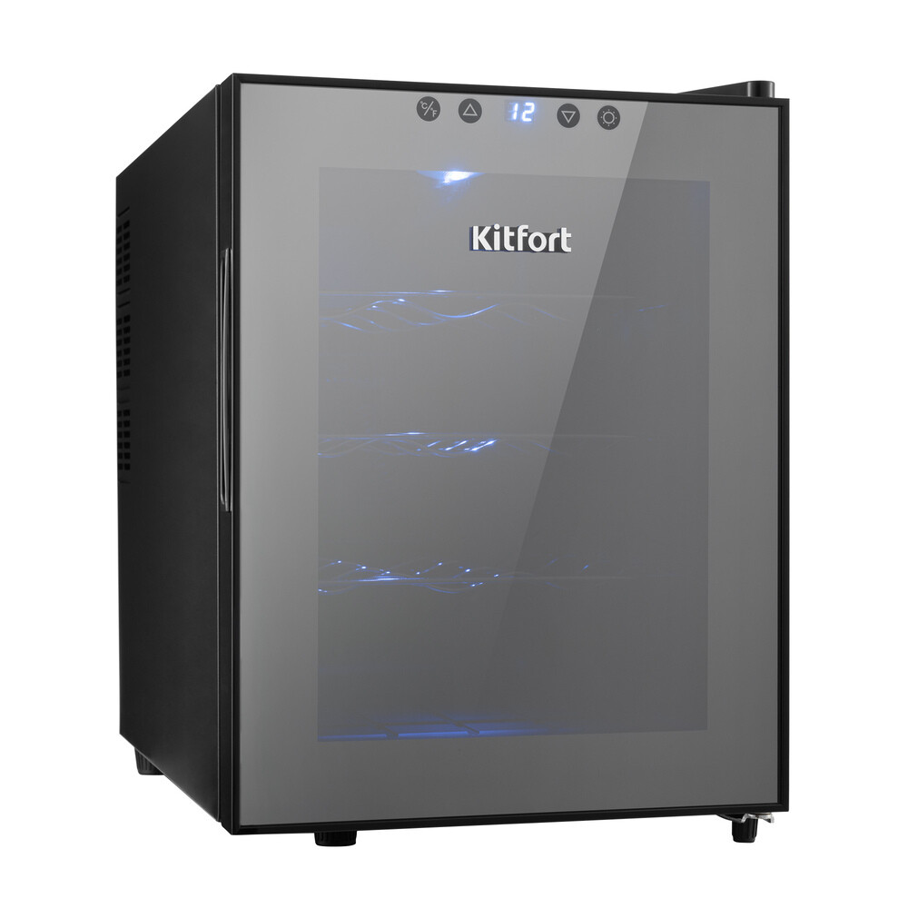 Винный шкаф – это специальная холодильная камера, в которой можно установить подходящую для хранения вина температуру. В винном шкафу четыре полки, на каждой полке помещается по три бутылки. Дверца шкафа прозрачная, в ее верхней части расположена сенсорная панель управления со светодиодным дисплеем. Охлаждение производится при помощи термоэлементов Пельтье, поэтому в конструкции винного шкафа не используются хладагенты и компрессор, из-за чего уровень шума и вибрации при работе значительно ниже, чем у холодильников. Температура внутри камеры винного шкафа выставляется в пределах от 10 °С до 18 °С с шагом 1 °С.