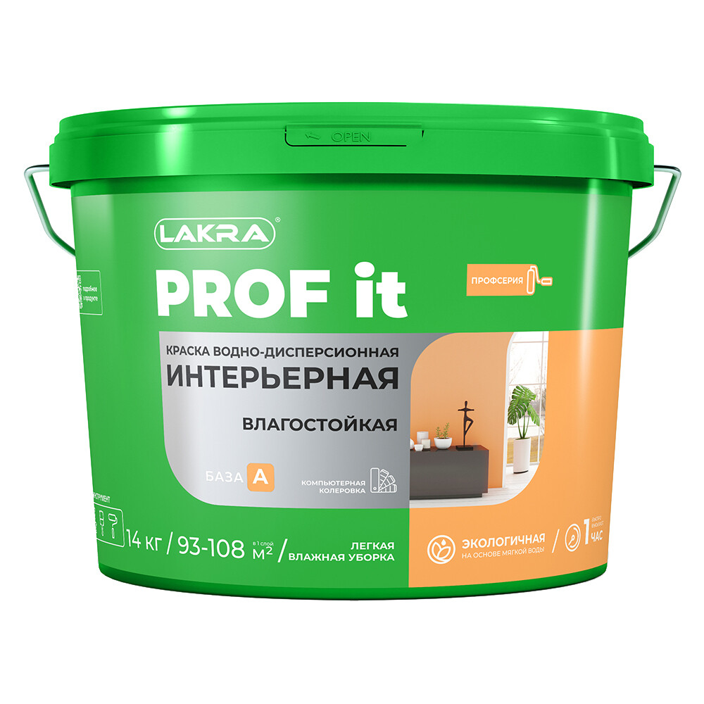 Краска влагостойкая Лакра Prof IT база A белая 14 кг