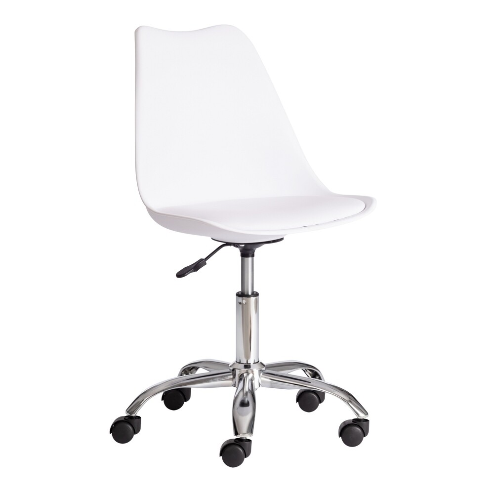Великолепное офисное кресло Tulip из коллекции Modern. Металлическое основание с регулировкой высоты, цельная спинка и сиденье из пластика с мягкой накладкой из экокожи обеспечат удобную посадку за столом на протяжении всего рабочего дня. Колесики позволяют плавно и бесшумно передвигать кресло. Накладка из экокожи – красивая, надежная, не требующая сложного ухода. Материал сочетает в себе мягкость и эластичность натуральной кожи с прочностью текстильных волокон. Пластик белого цвета и металл – прочные и долговечные материалы, не требующие специального ухода, способные выдерживать большую нагрузку. Кресло подойдет для кабинета, для офиса или для дома. Кресло очень простое в сборке, инструкция по сборке прилагается.