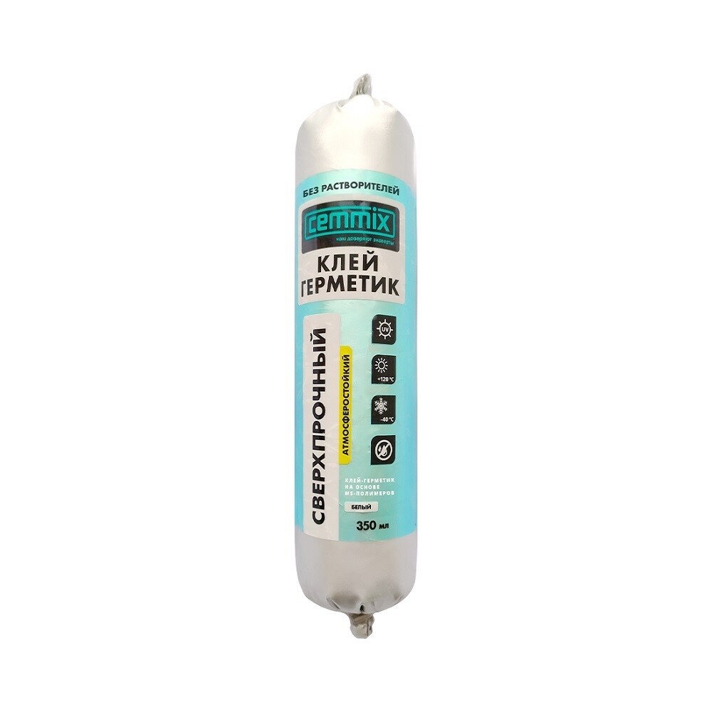 Сверхпрочный клей-герметик «CemMix» на MS-полимерной основе применяется для строительных и ремонтных работ любой сложности. Высокая прочность шва и хорошая эластичность герметика, а также ускоренные сроки полимеризации и схватывания, позволяют оперативно проводить укладку металлических профилей, систем водостоков и различных деталей кровли, герметизировать детали фундамента, заделывать швы и щели в стенах и подвалах, прочно склеивать и герметизировать сложные элементы конструкций, подвергающихся постоянным вибрациям. Клей-герметик обладает отличной адгезией к металлу, бетону, керамике, дереву, ПВХ, стеклу и другим материалам, при этом он не дает усадку после высыхания, сохраняет свою постоянную форму и эластичность. Работы по нанесению герметика можно выполнять при отрицательных температурах.