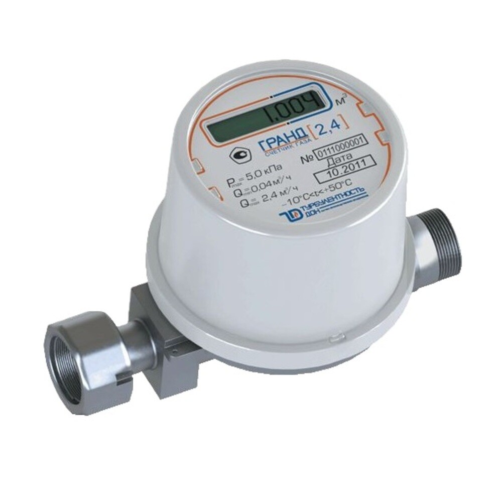 Предназначен для измерения объема газа (природного или паров сжиженного газа), расходуемого газопотребляющим оборудованием с суммарным максимальным расходом до 2,4 м³/час. Счетчик предназначен для установки без применения сварочных работ. Монтируется как в горизонтальном, так и в вертикальном положении. Диаметр условного прохода 1/2" (15 мм).