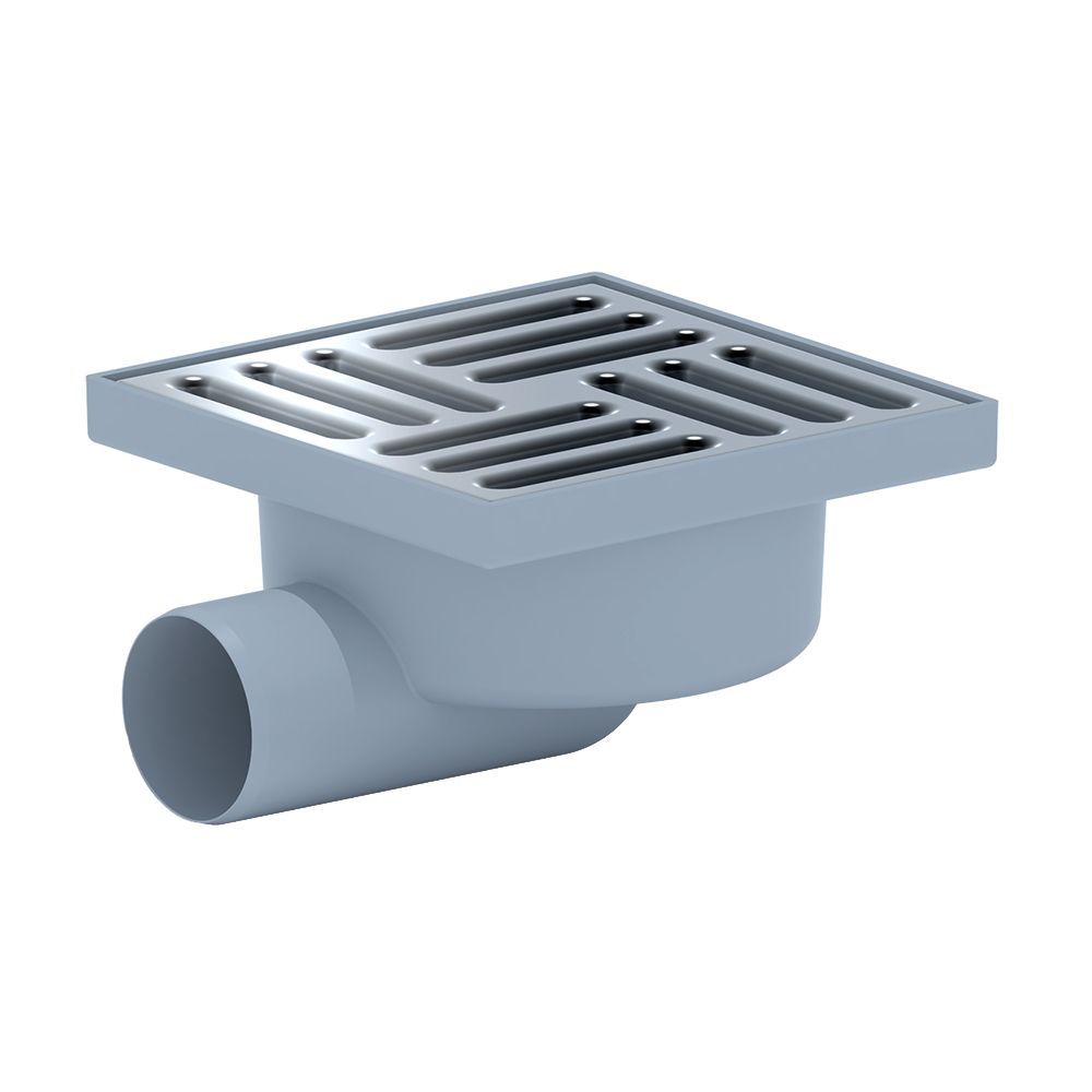 Сливной горизонтальный точечный трап с гидрозатвором и решеткой из нержавеющей стали 150x150 мм. Диаметр отвода – 50 мм, трап нерегулируемый с решеткой из нержавеющей стали 15x15 см. Трап с горизонтальным отводом имеет меньшую строительную высоту по сравнению с вертикальным трапом. Применяются? когда есть ограничения по высоте стяжки (канализационная сеть лежит под самой поверхностью). Подходит для частого использования. Элементарная поплавковая конструкция не позволит проникать запахам из канализации. Корпус выполнен из высококачественного полипропилена. Выдерживает нагрузку до 300 кг.