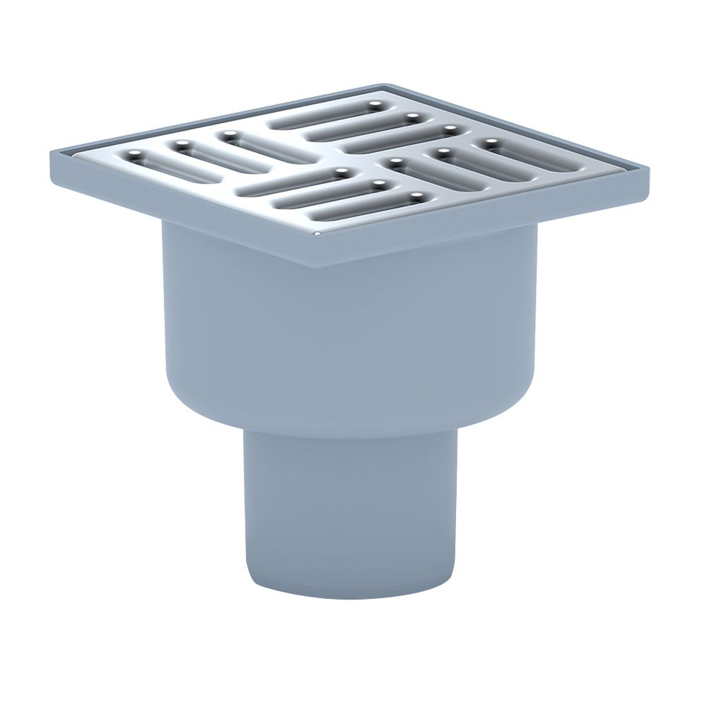 Сливной вертикальный точечный трап с гидрозатвором и решеткой из нержавеющей стали 100x100 мм. Диаметр отвода – 50 мм, трап нерегулируемый с решеткой из нержавеющей стали 10x10 см. Трап с вертикальным отводом чаще всего применяются, когда основная канализационная сеть, в которую будет отводиться жидкость, проложена глубоко. Подходит для частого использования. Элементарная поплавковая конструкция не позволит проникать запахам из канализации. Корпус выполнен из высококачественного полипропилена. Выдерживает нагрузку до 300 кг.