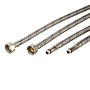 Резиновый шланг (EPDM) в оплетке из нержавеющей стали AISI 202, гайки и штуцер – латунь.