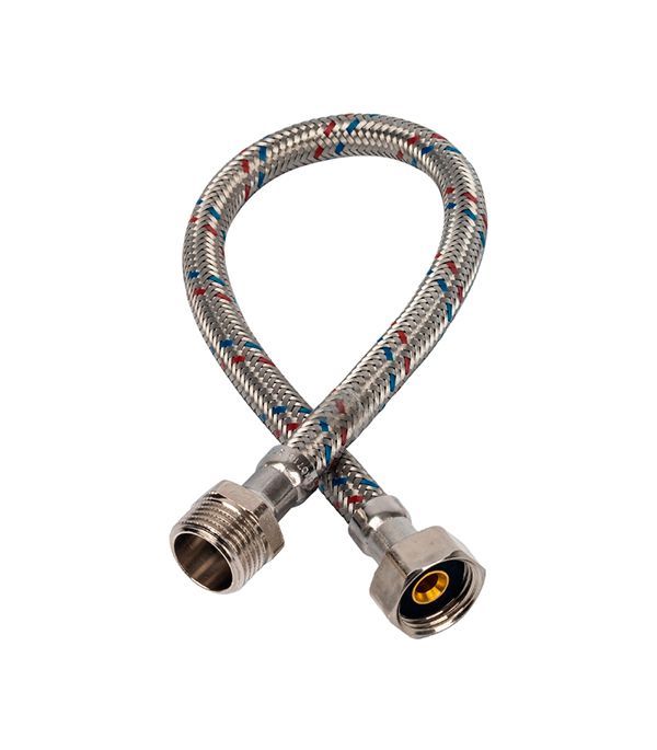 40 см – длина подводки; 1/2" – диаметр условного прохода 16 мм; в/н – 1 проход с внутренней резьбой, 1 с наружной.
