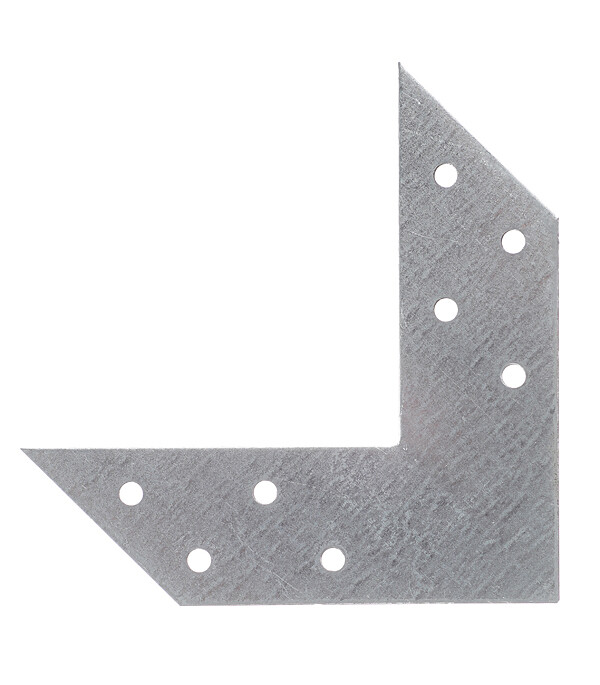 Предназначен для скрепления угловых соединений в деревянном домостроении. При монтаже рекомендуется скреплять угол с двух сторон. Изготовлен из оцинкованной стали. Имеет отверстия диаметром 5 мм под саморезы или гвозди.