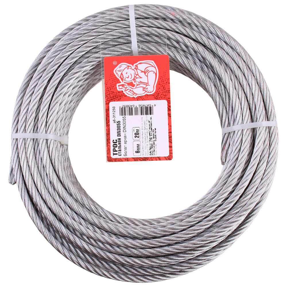 Трос стальной оцинкованный d6 мм DIN 3055 (20 м)Товар добавлен в корзину
