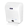 Автоматический диспенсер бумажных полотенец предназначен для оснащения санитарно-гигиенических комнат, сети общественного питания, спортивных, медицинских заведений, баров, ресторанов, кафе, школ и других заведений со средней и высокой степенью проходимости. Обеспечивает выдачу полотенец без контакта рук с оборудованием. Может работать от стандартной сети 220 В или от 4 батареек LR20 тип D, что допускает установку оборудования в любом месте без необходимости подключения к электросети. Возможность выбора длины подачи бумажного листа (короткий и длинный) позволяет настроить оптимальный режим потребления бумаги. Выполнен из ударопрочного пластика. Система оповещения – при отсутствии бумаги в диспенсере мигает светодиод красного цвета на передней панели диспенсера. Батарейки в комплект поставки не входят.