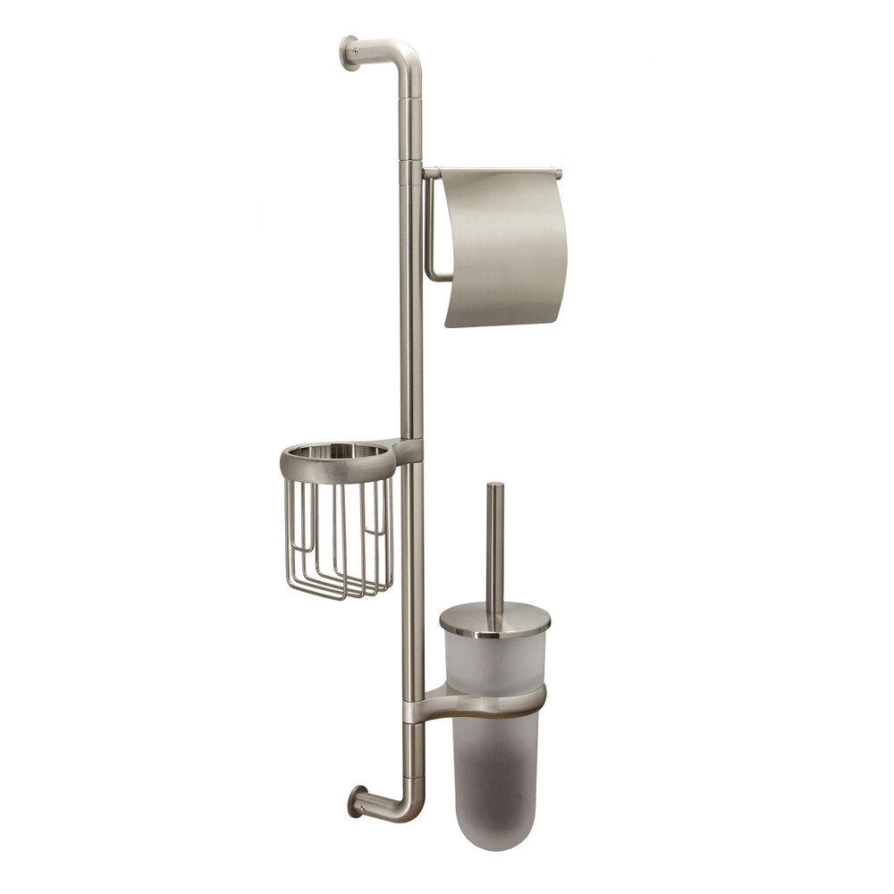 Предназначена для использования в ванной комнате/туалете. Изделие для ценителей компактного хранения дополнительных аксессуаров. Крепление всех частей изделия осуществляется с помощью встроенных винтов и внутренней резьбы. Пластиковые уплотнители для бесшумного и плотного соединения металла.