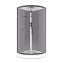 Душевая кабина с низким поддоном, серыми стенками и прозрачным стеклом. Кабина закрытого типа с крышей. Данная модель сочетает в себе высокие эксплуатационные характеристики, стильный дизайн и доступную цену. С целью достижения увеличенной жесткости конструкции горизонтальный профиль ложится на бортик поддона (а не рядом с бортиком) и не имеет движения по поддону, а отсутствие зазора между профилем и бортиком поддона препятствует скоплению грязи. Установка такой душевой кабины не займет много времени и сил.