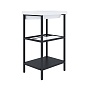 Боковые опоры – 2 шт., полка металл – 1 шт., полка стекло с рамой – 1 шт., гайка Ericsona – 4 шт., шпилька М6 – 4 шт., шайба 20х20 – 8 шт., винт М6х10 – 4 шт., заглушка – 4 шт., ножка – 4 шт., саморез-дюбель-втулка – 2 шт.
