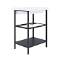 Боковые опоры – 2 шт., полка металл – 1 шт., полка стекло с рамой – 1 шт., гайка Ericsona – 4 шт., шпилька М6 – 4 шт., шайба 20х20 – 8 шт., винт М6х10 – 4 шт., заглушка – 4 шт., ножка – 4 шт., саморез-дюбель-втулка – 2 шт.