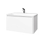 Тумба с раковиной из коллекции Welto бренда Raval – это сочетание практичности и минималистичного дизайна. Компактный выдвижной ящик освобождает пространство под тумбой для дополнительного использования. Плавное скругление углов и интегрированные ручки делают комплект максимально безопасным. Полноразмерная вкладная раковина из литьевого мрамора проста в уходе и устойчива к загрязнениям. Фасады тумбы изготовлены из МДФ и покрыты глянцевой пленкой ПВХ.