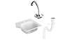 мойка, комплект кронштейнов (1 левый/1 правый), гибкое соединение, выпуск, хомут жесткости, смеситель – 1 шт., гибкая подводка – 1 шт., комплект крепления – 1 шт., паспорт – 1 шт.