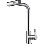 Многофункциональный смеситель для кухни с вытяжной лейкой – это яркая сантехника, а также идеальный помощник на вашей кухне. Одним из ключевых преимуществ данного смесителя является вытяжная лейка, которую можно легко снять и повернуть в любую сторону. Лейка имеет 3 функции. Линейный душ – режим широкой струи с мягким напором идеально подходит для быстрой очистки больших поверхностей, например, кухонной посуды с большим диаметром и разделочных досок. Спрей (поворот) – для мытья фруктов, овощей, ягод. Аэратор – подходит для повседневного использования Высокий излив смесителя удобно использовать в глубоких мойках, двойных кухонных раковинах. Смеситель выполнен из нержавеющей стали, безопасной для здоровья, устойчивой к коррозии, долговечной в использовании. На смеситель установлен картридж с керамическими пластинами и с гидрокомпенсатором, защищающим от гидроудара. Ручка из нержавеющей стали выполнена в виде палочки-джойстика с частыми насечками, удобна для быстрой настройки температуры воды. При уходе за изделием не используйте абразивные моющие средства, которые могут привести к царапинам на поверхности смесителя. Гарантия действует на весь смеситель в сборе.