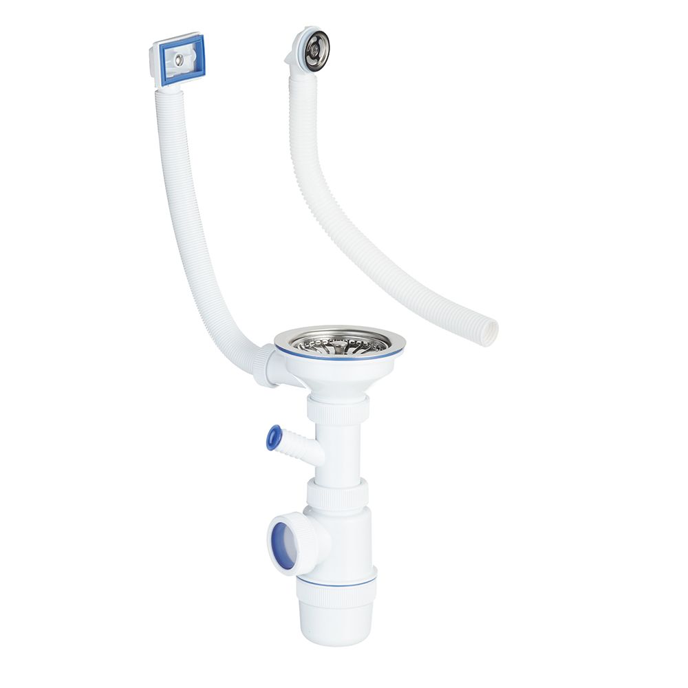 Сифон для мойки Wirquin Virplast 3 1/2х40 мм с выпуском d114 мм с отводом с переливом с фильтр-пробкой (30987089)Товар добавлен в корзину