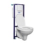 инсталляционная система, подвесной ободковый унитаз, сиденье полипропиленовое с функцией мягкого закрывания, панель смыва (белая), гарантийный талон.