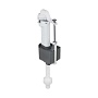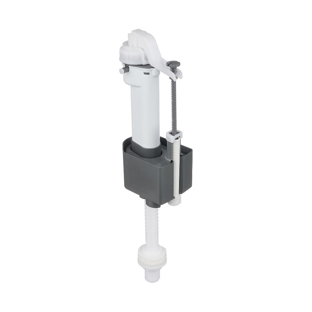 Компактный и универсальный наполнительный клапан подходит для большинства смывных бачков с нижним подводом воды на 1/2 дюйма. Кожух поплавка гарантирует работу даже при касании стенок бачка. Клапан выполнен из пластика и оснащен функцией "отложенного открытия" – кран открывается только после завершения смыва. Гидравлическое закрытие (без гидравлического удара), малошумный (уровень шума менее 20 дБ), уровень набора воды регулируется винтом. Диапазон функции давления – от 0,5 до 12 бар, расход 0,14 л/с при давлении 3 бара (работа при низком давлении с фильтром). Телескопическая трубка позволяет регулировать высоту клапана от 239 до 347 мм.