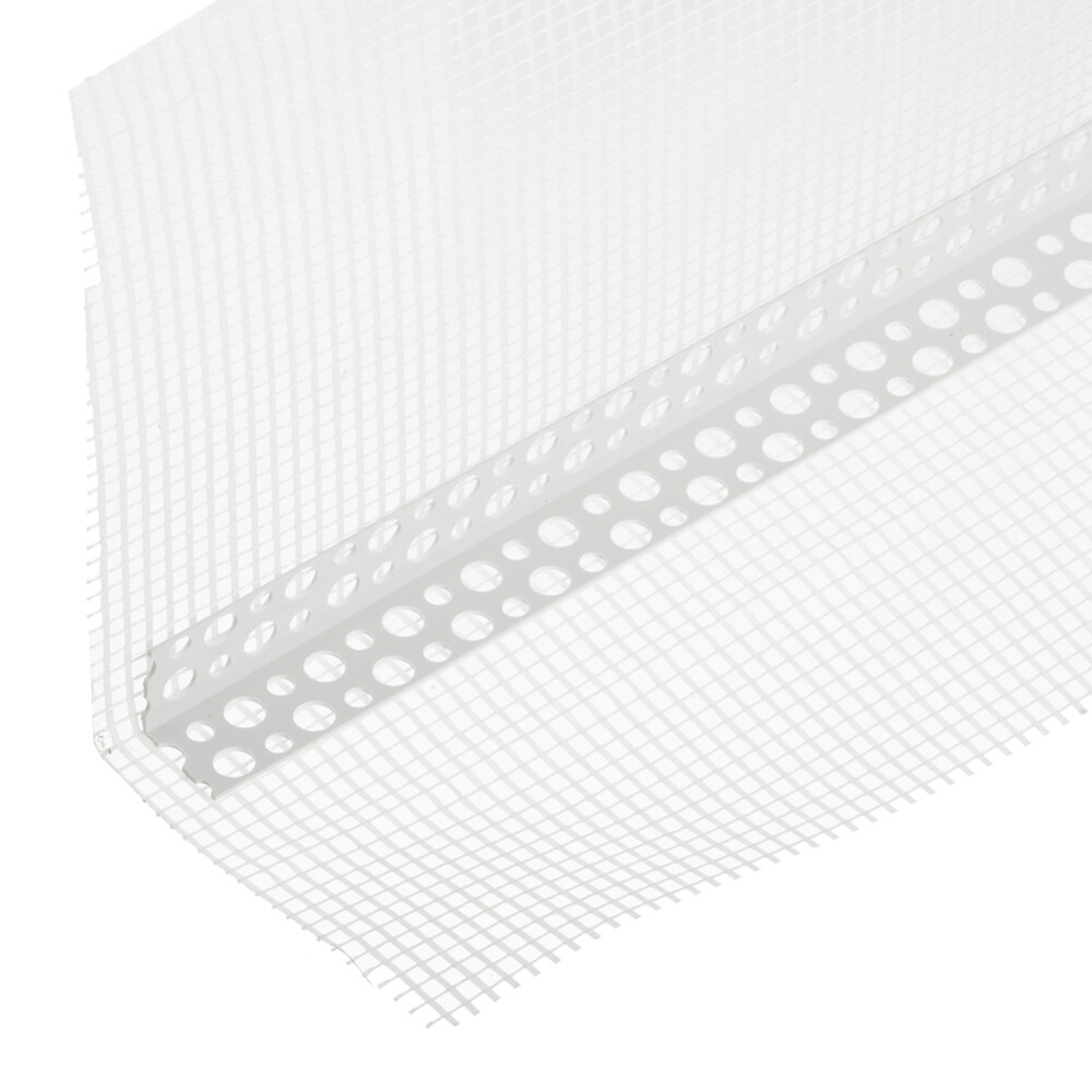 Предназначен для предварительного выравнивания углов под покраску, декоративную штукатурку, поклейку обоев или другую отделку. Формирует прямолинейную и прочную угловую кромку наружных (внутренних) углов конструкций из ГКЛ и ГВЛ и т. п. Применяется в системах наружной теплоизоляции зданий. Применение профиля позволяет исключить образование трещин и разрушение штукатурного слоя на углах зданий, в местах примыкания дверных, оконных проемов и перекрытий к стенам. Армирующие перфорированные профили из ПВХ повышают механическую прочность штукатурного слоя, не ржавеют и не разрушаются с течением времени, позволяют аккуратно и качественно оформить различные виды угловых поверхностей зданий. Профиль перфорированный с армирующей сеткой (общая ширина с сеткой – 100х150 мм, ширина пластикового профиля – 20х20 мм).
