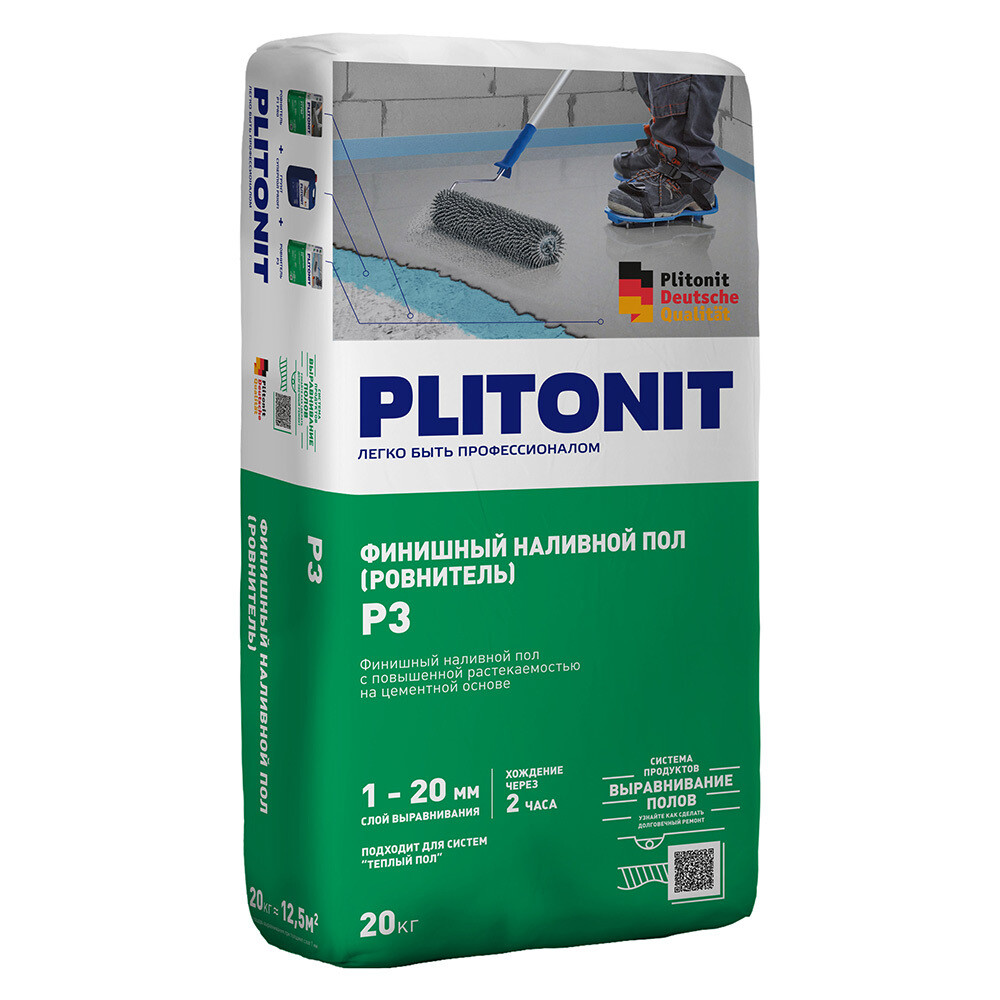 Ровнитель (наливной пол) финишный Plitonit P3 самовыравнивающийся 20 кг
