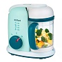 варит на пару, а затем измельчает и смешивает. Блендер-пароварка оснащена удобными кнопками управления. Благодаря корзине, пар во время готовки постоянно циркулирует в чаше и равномерно прогревает продукты. По окончании готовки прибор автоматически отключается, поэтому пища не переварится. Все части блендера, кроме моторного блока, можно мыть водой с мылом.